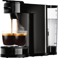 Zet filterkoffie of gebruik handige pads met de Philips Senseo Switch HD6592/64. Dankzij DualBrew-technologie zet je Senseo-koffie en filterkoffie met de juiste hoeveelheid druk en water. Je zet niet alleen 2 koffies tegelijkertijd, maar zet ook een hele koffiekan. Uit de meegeleverde thermoskan haal je zo’n 7 koppen koffie. Vervolgens houdt de kan de koffie nog lang op temperatuur. Handig als je visite over de vloer krijgt. Je plaatst gemakkelijk een koffiepad in de houder en drukt op de knop. Zo is de koffie in een handomdraai gezet. Naast een pot koffie, zet het koffiezetapparaat een milde kop koffie en een kleinere sterkte kop koffie, dankzij de Intensity Select Functie. Het apparaat schakelt zichzelf automatisch uit. Dat is niet de enige duurzame functie, zo bestaat de Senseo tot wel 50 procent uit gerecycled materiaal. Zodra de machine toe is aan een ontkalkingsbeurt, licht het indicatielampje op.